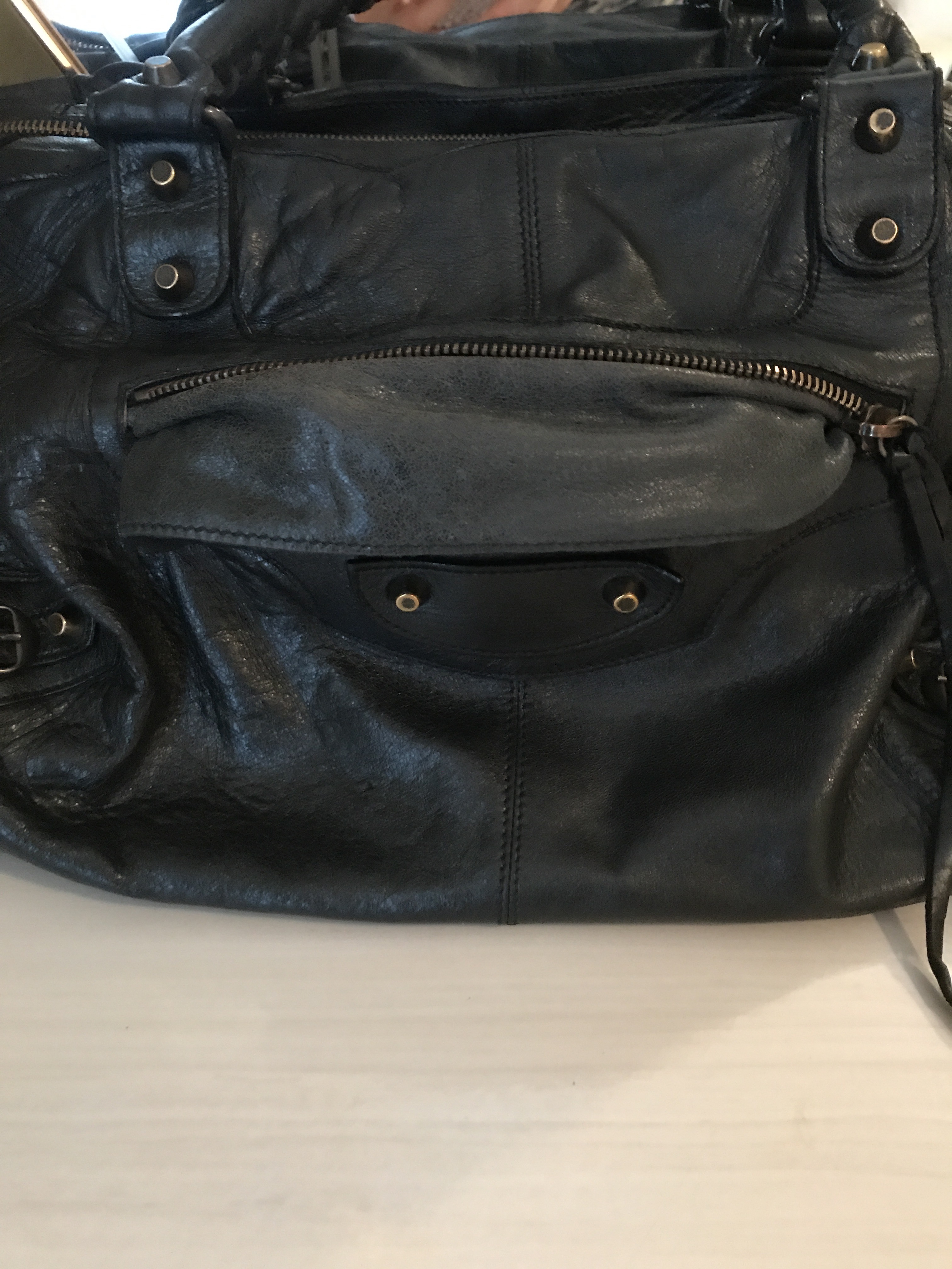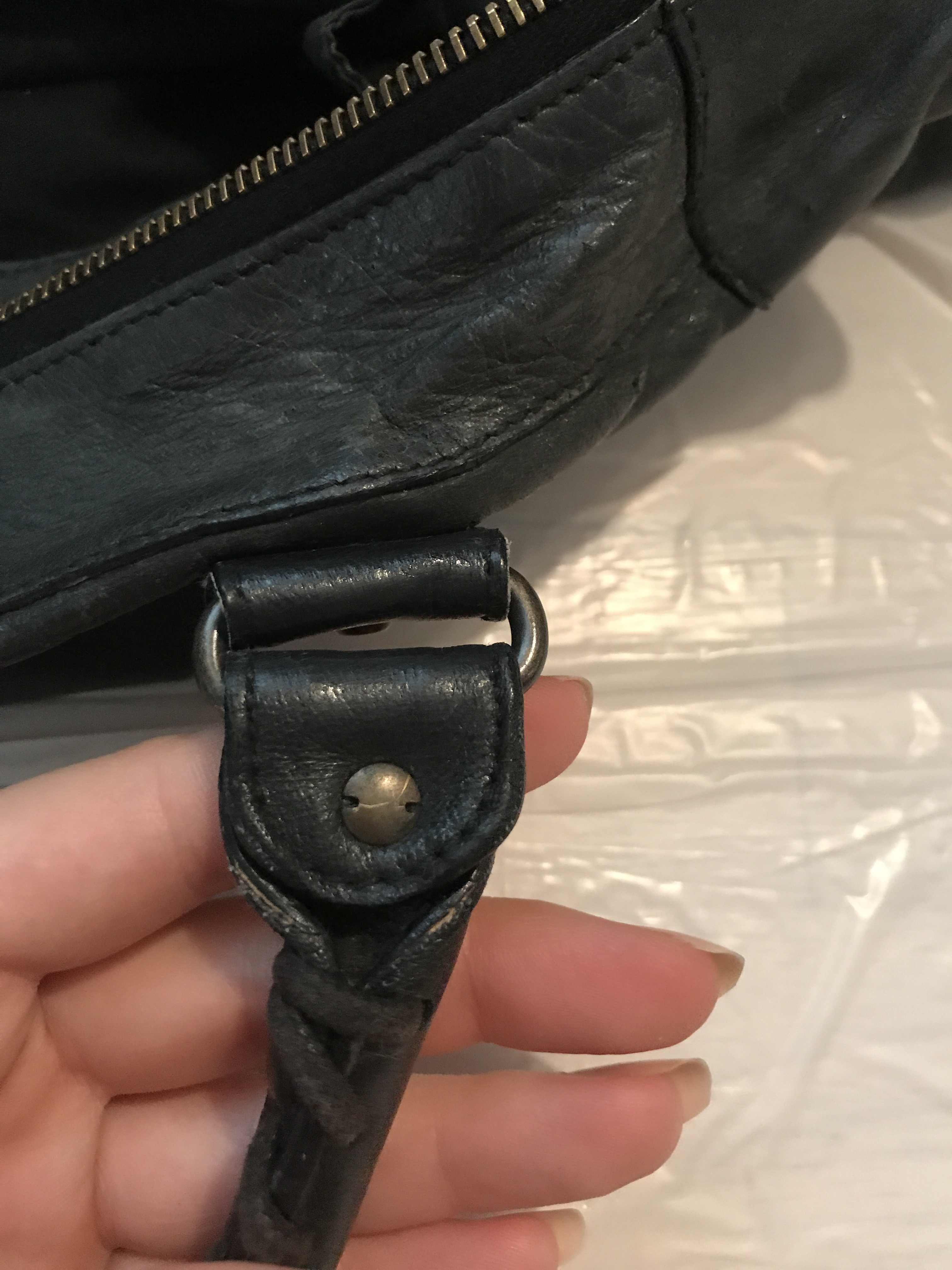Some of the best deals to get are ones that require a little more patience and elbow grease. I’m going to share my most recent purse rehab with you today: a black Balenciaga Work bag. I’ll show you what the damage was, how I fixed it and a before and after comparison.